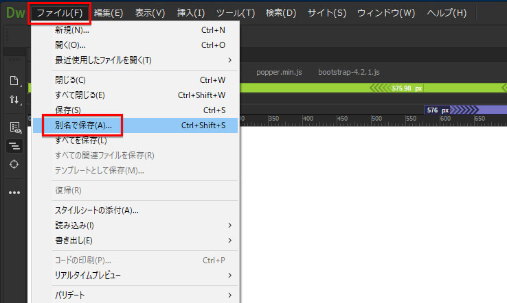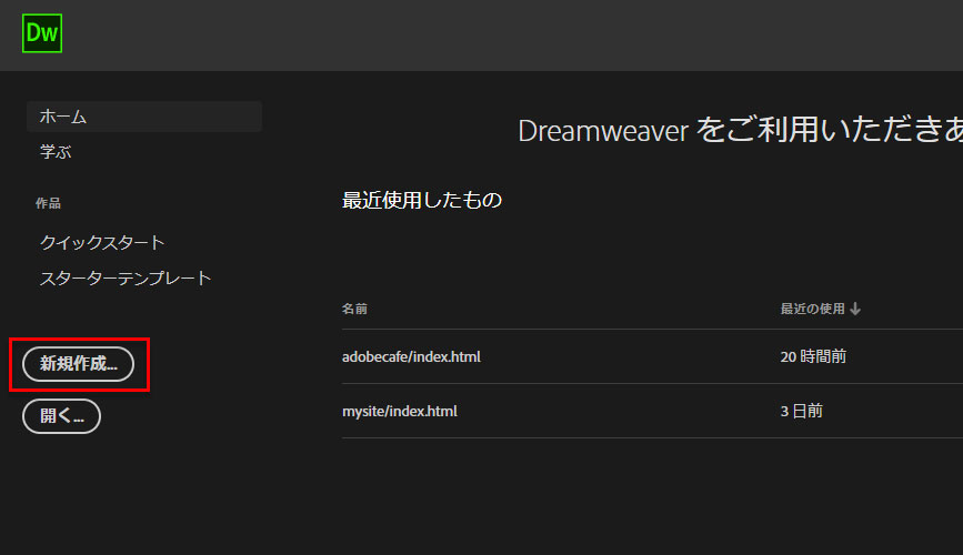 先ほどダウンロードしたフォルダ「adobecafe」に「index.html」というファイル名で保存します。