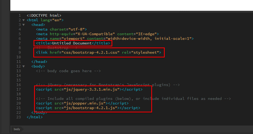 現在は<title>が「Untitled Document」になっていますので、「AdobeCafe」に変更しておきましょう。