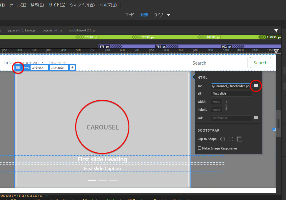 「BOOTSTRAPのコンポーネント」→「Carousel」を選択します。